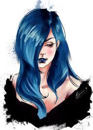 Faye has long black hair, pale skin, small pale scars on the right side of her jaw, and across her arms. Her eyes are sea green. Recently, she dyed everything except near the roots of her hair blue.