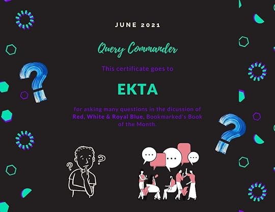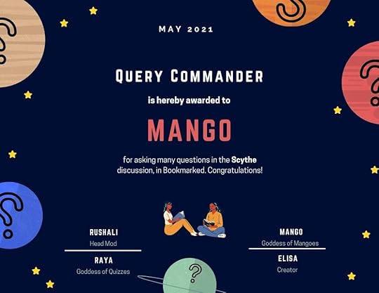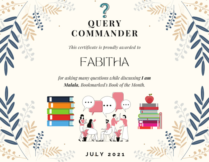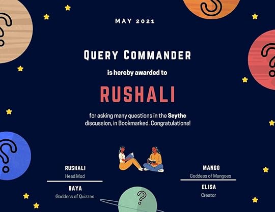 1. The Queries Commander: For the ones who were actively asking questions in discussions. This award is presented to Fabitha for the book Mexican Gothic, Erica for the book House of Earth and Blood.