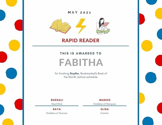 Additionally, we are not sure if any of you participants finished a BOTM before the schedule. Due to this, we have made a common Rapid Reader badge, which is up for anyone to claim, if they finished the book before schedule.