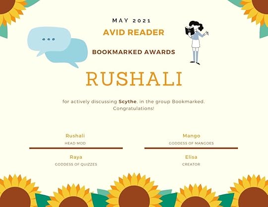 2. The Rapid Reader: For the ones who read the book before schedule. This award is presented to Fabitha for the books Mexican Gothic and Cinder, Erica and Savana for the book House of Earth and Blood.