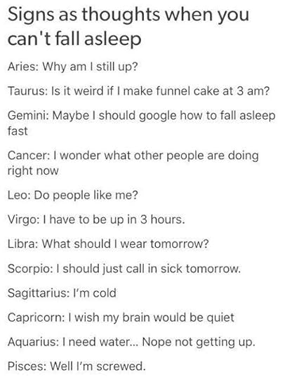 "I wonder how many times I've ever blinked?" is so true :P, and me saying I have to be up in 3 hours when I can't sleep is also 100% true, I have to be up in 5 rn XD.