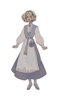 Outfit: His typical work outfit is a white undershirt with cobalt slacks and an overcoat, both with golden embroidery. He also wears a slate gray cloak with a cobalt underside