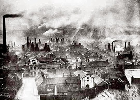 In his rendering of Coketown, Dickens creates “a town of machinery” that is an “unnatural red and black like the painted face of a savage”. Smoke is never “uncoiled” in the air above, and there is “rattling and trembling” where a steam-engine piston “works monotonously up and down”. Dickens’ view of Coketown is clearly defined in his description of it as a “wilderness of smoke and brick” with “direful uniformity”, as it is “shrouded in a haze of its own”. Dickens is harsh in his portrayal of a hellish scene– the coiling, the rattling, the up and down of the piston that creates the “wilderness” and the shroud. The town is inorganic, inhumane and rusted. It is a “savage” like an uncivilized animal. While its “wilderness” implies a sense of life, the town is covered, hidden from enlightenment, a hazy corpse wrapped in smog. And it is through his dire, smogged filled imagery that we are able to picture such a noxious environment.