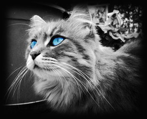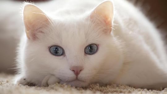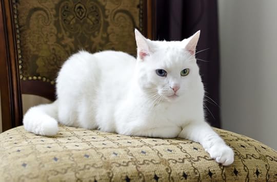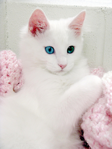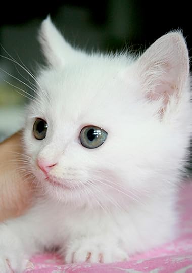 She is a turkish angora and has a fluffy white pelt, that's soft to the touch. She has a lighter and thinner form which helps her with fast and effective attacks. She has bright, gleaming odd color eyes. One being a brilliant, sky blue, while the other is a shimmering forest green with a speckle of sky blue. She has a light pink nose and medium size pink ears. Though her fatal flaw with her psychical self would have to be that on her left side she is both completely blind and deaf.