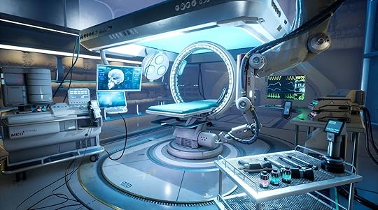 Rach slowly inserted a needle into her arm and started to draw blood. Frey, trying to distract her, asked, "So, I don't suppose you've ever been on a spaceship before, huh?"