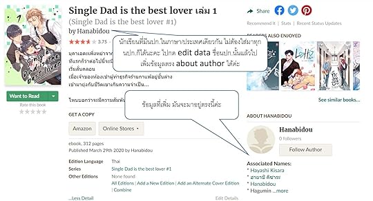 นามปากกานักเขียนที่อยู่ในภาษาหรือประเทศเดียวกัน ไม่ต้องใส่มาทุกนปก.ก็ได้นะคะ มันสามารถ edit data นักเขียนเพื่อให้แสดงในช่อง about author ที่อยู่ด้านข้างได้ (ดูภาพประกอบ)
