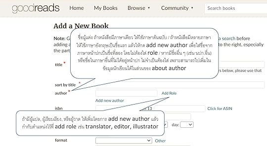 ชื่อผู้แปล (Translator), ผู้วาด (Illustrator), ผู้เรียบเรียง (Editor) ถ้ามี ก็เพิ่มไปเลยทีละคนค่ะ ใส่ role กำกับไว้ด้วยนะคะ