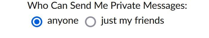 3. About halfway down, you will find the "Who Can Send Me Private Messages:" entry. Change it to "anyone".