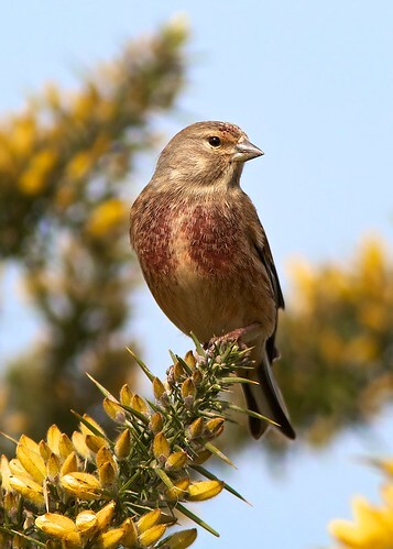 A linnet, now on the red list for endangered species in Britain, is a small, insignificant bird with a melodious call, mainly reliant on the leftover seeds found in farmers fields, originally the linseeds. The overuse of chemicals and modern farming techniques have reduced its numbers dramatically.