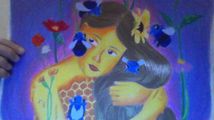 thank you. that was my first try with colored pencils and it came out interesting. my art teacher submitted it to a competition and i believe that i will win :)