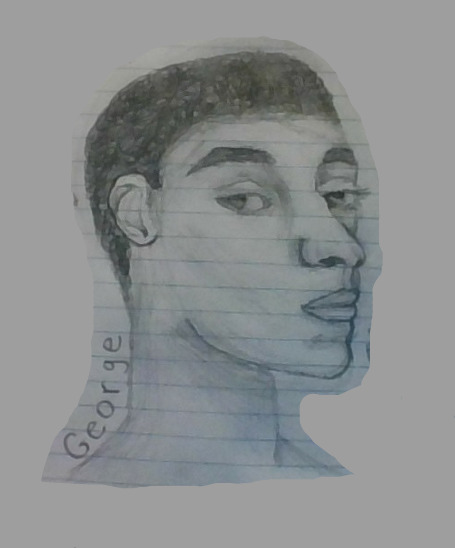 So, IDK if anyone has read All Boys Aren't Blue, but I drew the George from the front cover. I drew it for a class assignment, so it's on lined paper, but I had to get rid of the background because it had writing all over it, so it's a different background so it looks a bit weird, but you can still see the picture.