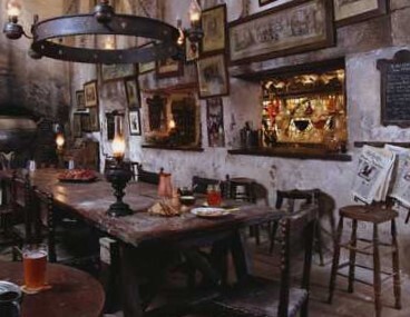 The Leaky Cauldron is a popular wizarding pub and inn located in London. It is the entrance to Diagon Alley and, indirectly, Knockturn Alley. The rear of the pub opens up onto a chilly courtyard that contains the entrance to both alley ways.