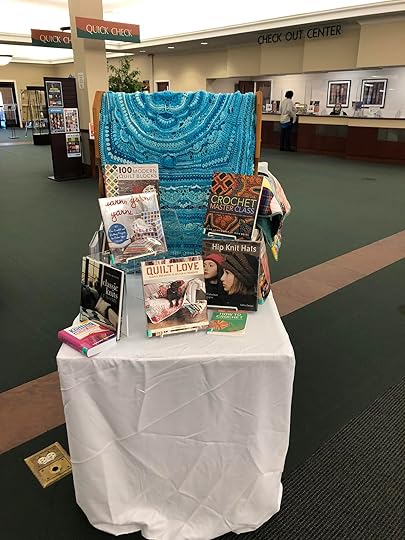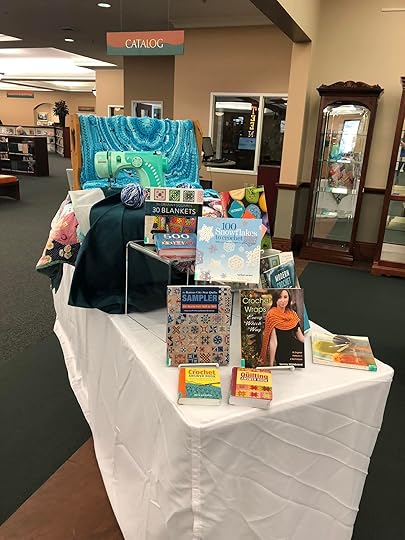 Crochet and Quilt display. Check out a quilt and crochet book.