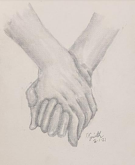 funny story, i cant draw hands to save my life. i did this in school today, took me a solid 30 or 45 minutes. the fingers looked like sausages before i shaded them... there are weird lines on it because it was drawn on canvas.