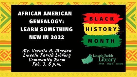 African American Genealogy February 3, 2022 at 6pm in LPL Community Room