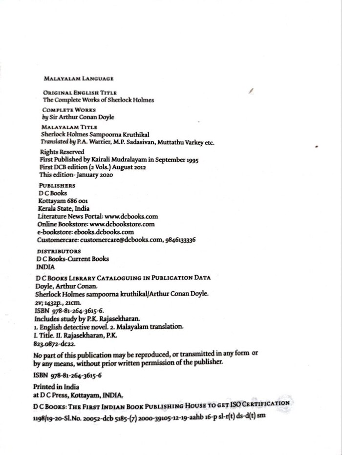 Please correct the title to: ഷെർലക് ഹോംസ് സമ്പൂർണ്ണ കൃതികൾ (2 വാല്യങ്ങൾ) [Sherlock Holmes Sampoorna Kruthikal (2 Volumes)]