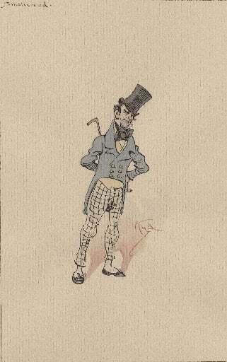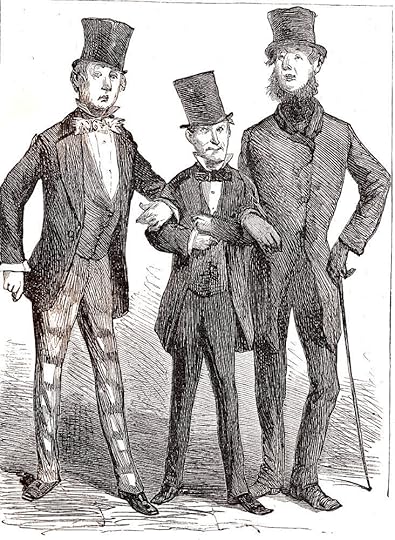 “Mr. Jobling is buttoned up closer than mere adornment might require. His hat presents at the rims a peculiar appearance of a glistening nature, as if it had been a favourite snail-promenade. The same phenomenon is visible on some parts of his coat, and particularly at the seams. He has the faded appearance of a gentleman in embarrassed circumstances; even his light whiskers droop with something of a shabby air.”