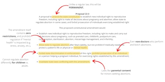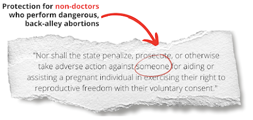 "This amendment was written to deceive voters into PERMANENTLY altering our state constitution to enshrine the most radical, extreme, and dangerous abortion laws in the whole nation. If this passes, Michigan will be the state with the most EXTREME abortion law on the books, permitting abortion in situations that over 80% of Michiganders reject year after year." (Please go to https://stopabortionextremism.com/ to learn more.)