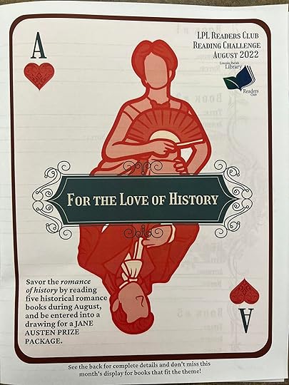 August Reading Challenge FOR THE LOVE OF HISTORY Savor the romance of history by reading five historical romance books during August, and be entered into a drawing for a JANE AUSTEN PRIZE PACKAGE.