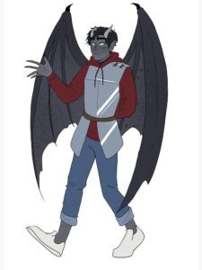 he's a gargoyle! much like all gargoyles, he is very heavy as he is made out of stone and has grey skin and wings. he seems more skilled in magic than his siblings, as well as combat, which is a given, as he has had more years of experience than them and didn't spend all his time goofing off like those two did.