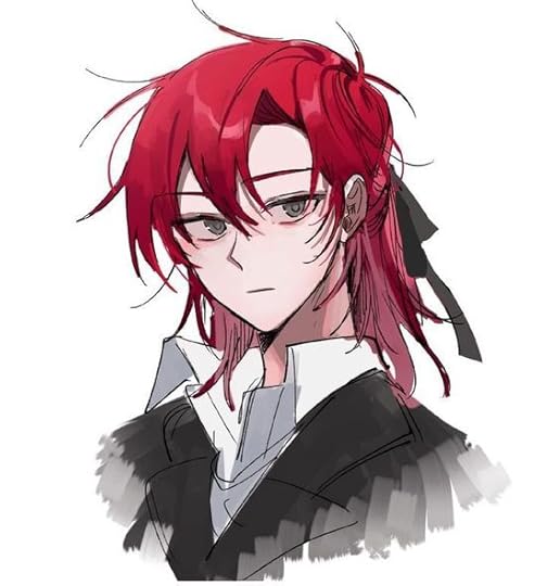 the male is on the shorter side in his human form, standing around 5'6". He has shoulder-length long, red hair and dark brown eyes. In his human form, he's rather pale and doesn't really seem to be very fit. he's the opposite of active and athletic, having low stamina and not much strength in his human form. it seems as though he's rather weak in this form and is rather slender.