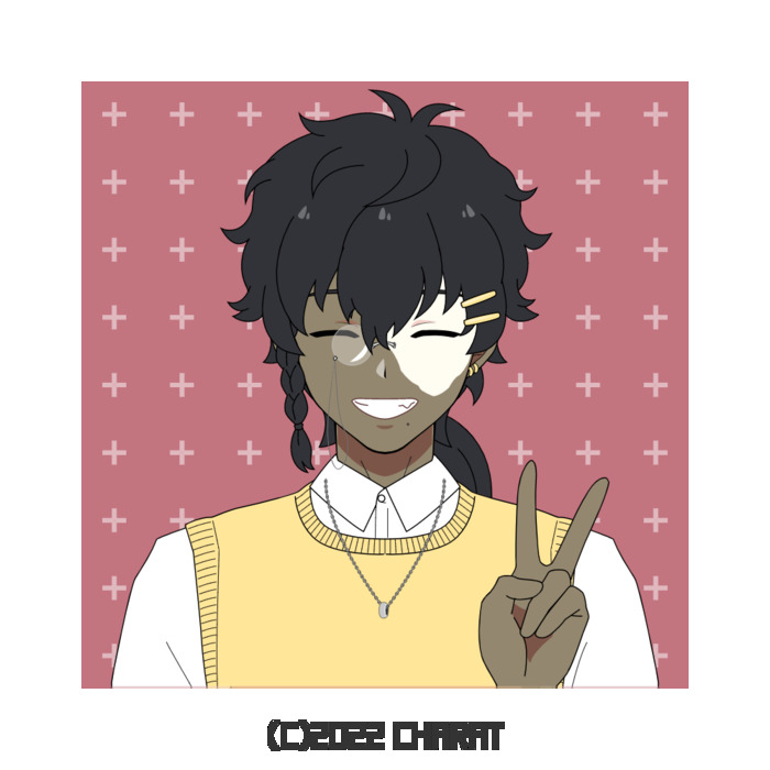 Appearance: He's not really tall but he around 5’5,he has black hair and grey eyes, he kinda has hair like zuko, he mixed but has Vitiligo type of skin (on his legs and around his forearms and hands and ironically has a vitiligo marking like zuko's burn mark)