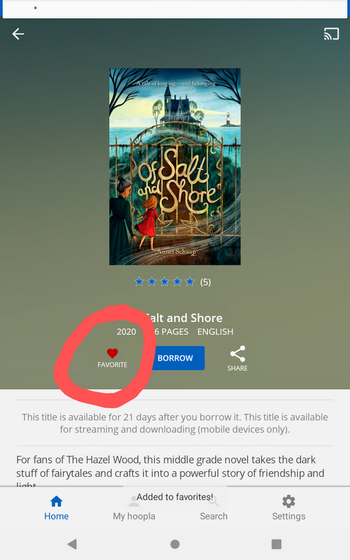 up top on the home screen next to borrowed is favorites