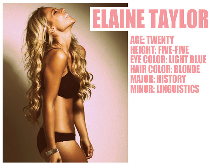 There are plenty of things Elaine could have been doing right now, and a lot of them began and ended with 'class' and ended in 'work', but it was a friday night and boy were her friends convincing. Not that she needed much of that convincing nature to wiggle into a nice tshirt and a skirt before heading out. Nor did she need it to curl her hair and actually look sort of nice because sweetheart it was friday night, and that essay she had to write was not sounding so appealing this fine evening. No, not even the Aztecs could put her in a good mood. The thrum of the music pulsing through her skin, and the soft buzz growing in the back of her brain, though, was a different story. Elaine, admittadly, was a bit of a light weight, and probably shouldn't have let herself down that last one, but wasn't completly unaware of her surrondings. She leant up against the with giggiling at her friends as they poked fun at one another, people bumping into here from this way and that, but never did she say anything. The liquid in her cup was only half full, to be fair, and Goood it tasted so good. To say the least it had been a long week.