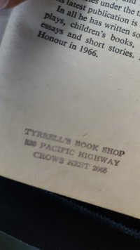 "After his death Tyrrell's Bookshop was managed by his son John and his grandson William ("Bill"). In 1971 it moved to 328 Pacific Highway, Crows Nest"