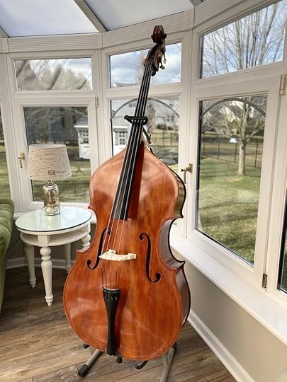 A bass, the few art supplies that he can afford, a couple of books
