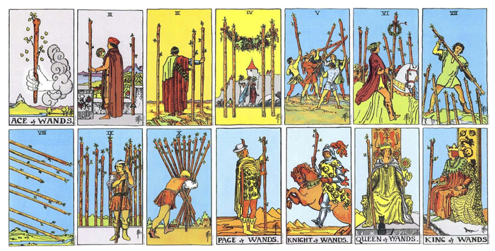 Minor Arcana (4 suits of 14 cards): (view spoiler)[