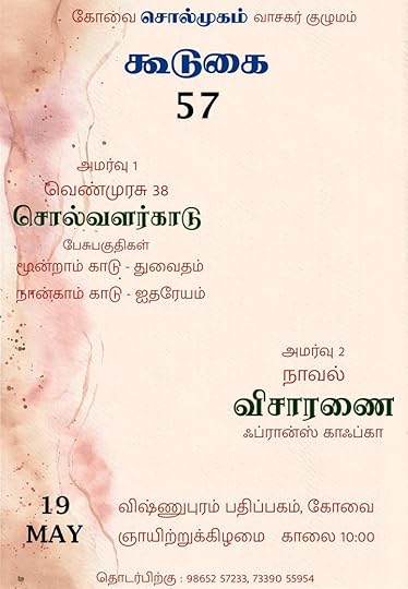 கோவை சொல்முகம் வாசகர் குழுமம் ஒருங்கிணைக்கும் 53வது இலக்கிய கூடுகை வரும் ஞாயிறன்று (சனவரி - 28) கோவையில் நிகழவுள்ளது.