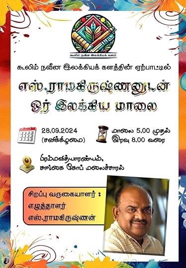 டிசம்பர் 25 புதன்கிழமை மாலை சென்னை கவிக்கோ மன்றத்தில் எழுத்தாளர் எஸ்.ராமகிருஷ்ணன் அவர்களின் நான்கு புதிய நூல்களின் வெளியீட்டுவிழா நடைபெறுகிறது.