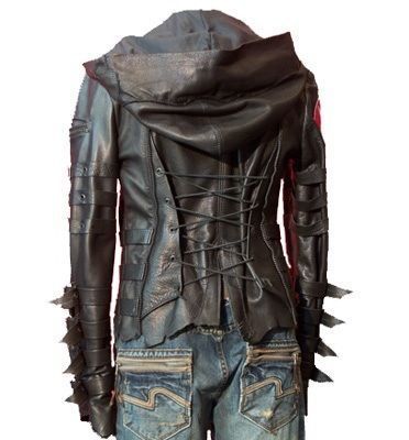 Written Appearance: A strong, beautiful young woman, Jillian appears older than she actually is. She stands at 5'9" and weighs around 130 pounds. She has an athletic body type with wider shoulders, a narrow waist, and small hips. She has an oval shaped face with high, angular facial features. Her eyes vary from olive green to emerald green depending on the light. She has naturally light skin that darkens in the sun. Her hair is dark brown almost black, long, and voluminous which she usually keeps tied away from her face in a braid. Her clothing consists entirely of brown leather and her mask covers her entire face while a hood hides her head.