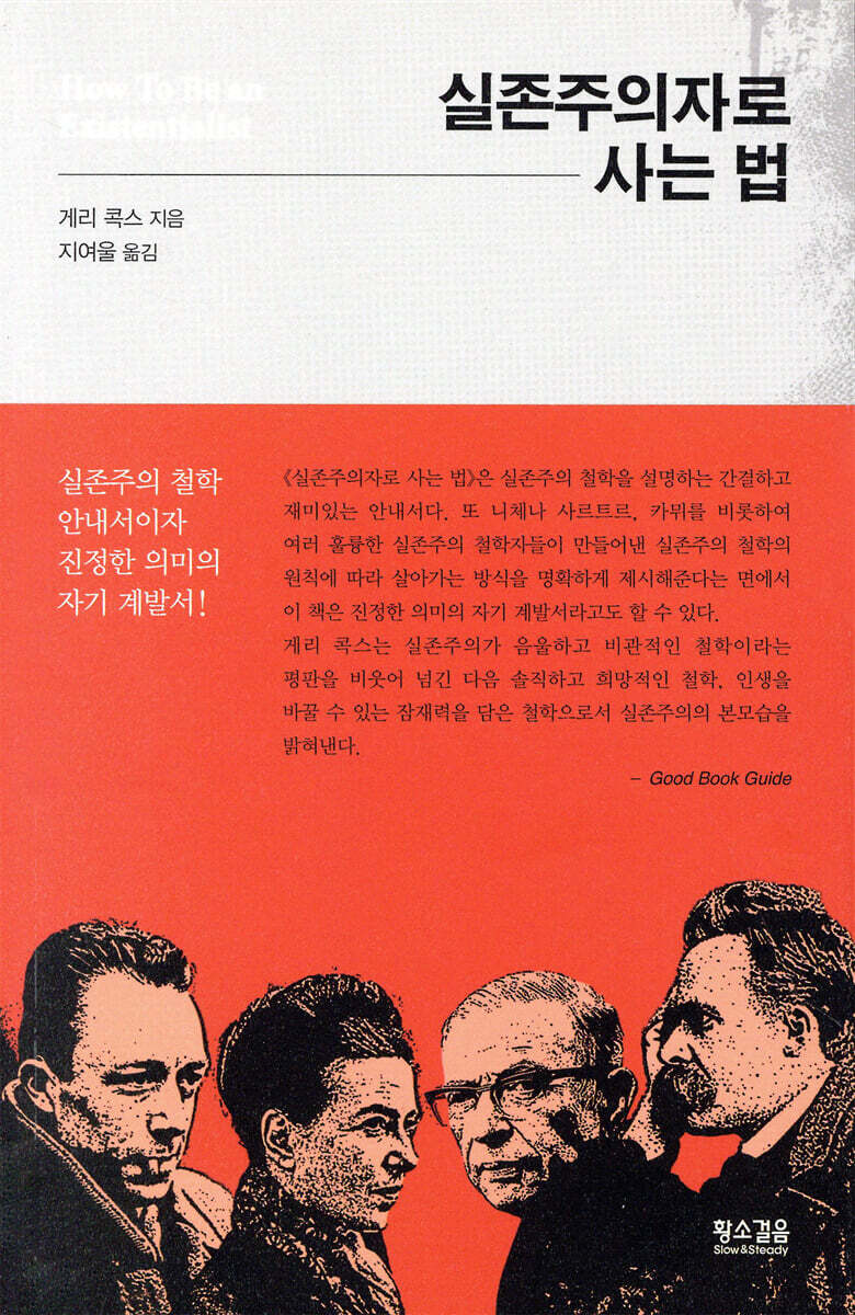 게리 콕스는 이해하기 쉬운 예와 특유의 유머를 버무려 솔직하고 희망적인 철학, 인생을 바꿀 수 있는 잠재력을 담은 철학으로서 실존주의의 진정한 모습을 밝혀낸다. 그에 따르면 실존주의는 인간의 삶을 있는 그대로 직시하는 지독할 정도로 솔직한 철학이며, 긍정적이고 반허무주의적인 철학이다. 그 까닭은 실존주의는 인간존재가 본질적으로 무의미하고 불합리하다는 사실에도 우리가 성실하고 가치 있게 살아갈 수 있다고 주장하며, 그럴 수 있는 방법을 알려주는 철학이기 때문이다.
