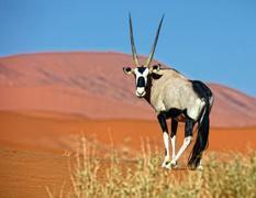 Although a desert, the Namib is not devoid of life. Here it is possible to admire the oryx, a large antelope with truly enormous horns, or the so-called desert elephants, which manage to survive by moving from one oasis to another. The oryx can be found elsewhere, but it is certainly the symbolic animal of Namibia. The desert is also home to one of the most unique plants in the world: the Welwitschia mirabilis. Even though it does not have a trunk, it is considered a tree. Its ribbon-shaped leaves grow from the base, and the ends gradually dry up and die.