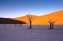 Namibia owes its name to the Namib Desert, one of the oldest deserts in the world. It is largely located in protected areas, including the Namib-Naukluff National Park, which is the largest national park on the entire continent. A well-known tourist destination is Sossusvlei, a salt flat where you can find both Dune 45 (perhaps the most photographed dune in the world) and Big Daddy (the highest dune in the world). Another much-photographed desert spot is Deadvlei, a depression characterized by white sandy soil and a large number of acacia trees, which died after the river that passed through here diverted its course due to the movement of the dunes.