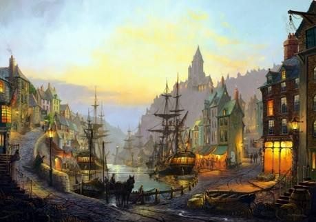 Galileo Bay is a small port/ fishing town based on the crescent shaped archipelago on the northeastern coast of Hyara. The water here is said to be so smooth that it reflects the stars at night. A stone lighthouse, known as “The Lantern” stands atop a high cliff made of smooth white limestone. The docking fee is 2 shillings for a small ship and 4 for a large ship.
