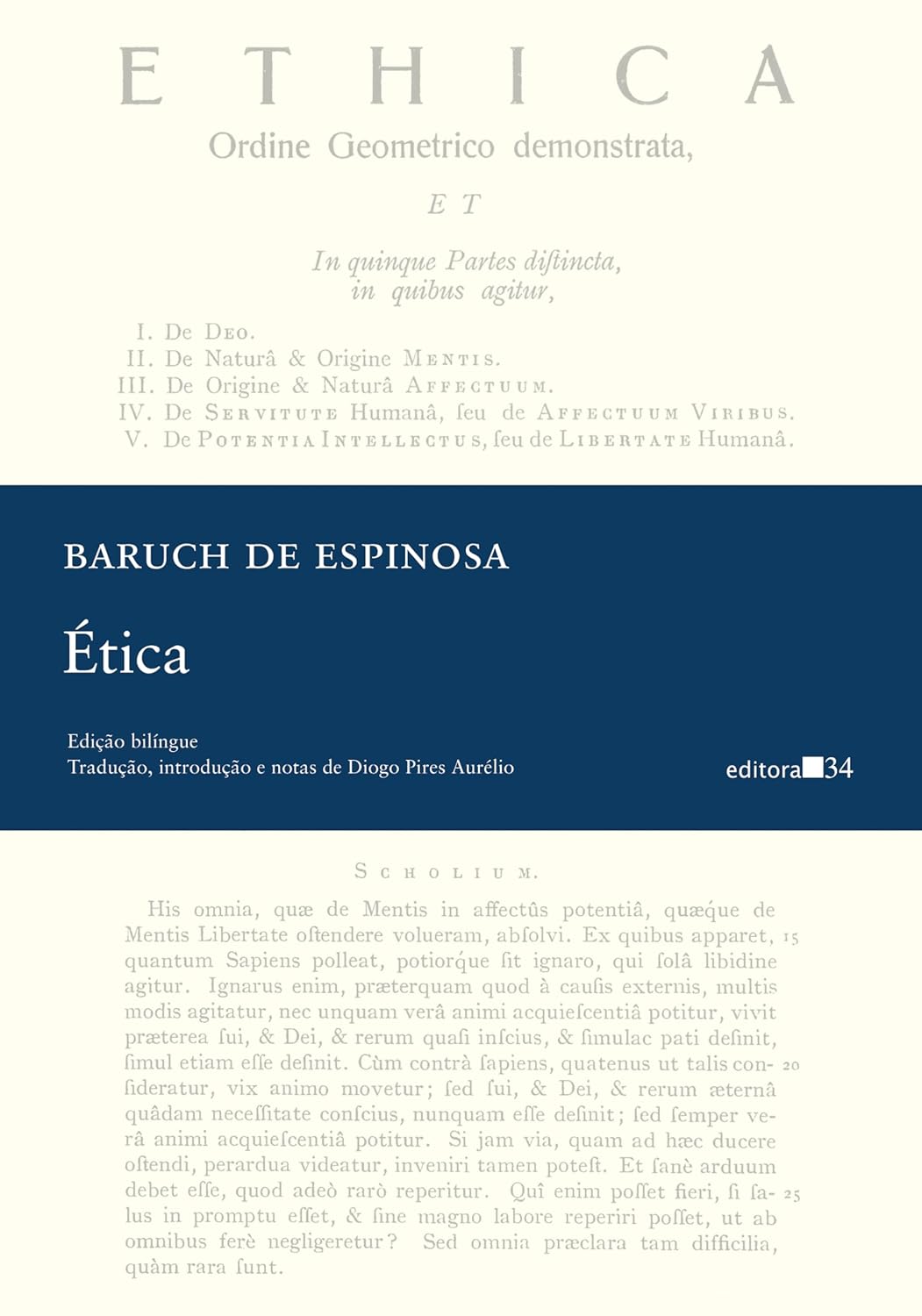 O presente volume, bilíngue latim-português, baseia-se na canônica edição Gebhardt da Ética , e traz a apurada tradução de Diogo Pires Aurélio, um dos maiores especialistas da atualidade na obra de Espinosa, que também assina as notas e a introdução a este grande clássico da filosofia moderna.