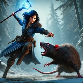 Let me share my very first Battle – January 4th, 2015 - Sewer RatA very green adventurer, Lady Zuzana, wanders through the woods north of Queen Skye’s castle, eager for her first taste of adventure. The morning air is crisp, the ground blanketed in pristine snow, and all seems eerily still. Even the foul monsters that supposedly plague the kingdom appear to be asleep.