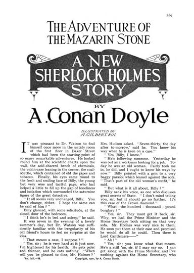 "The Adventure of the Mazarin Stone" is one of 12 Sherlock Holmes short stories by Arthur Conan Doyle in The Case-Book of Sherlock Holmes. It was first published in The Strand Magazine in the United Kingdom in October 1921, and was also published in Hearst's International in the United States in November 1921.