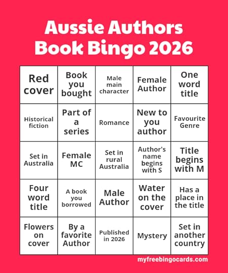Each bingo space has a task in it. Complete a space by reading a book which matches the task. For tasks which ask for a book cover make sure you show it please. This one is our AUSSIE AUTHORS ONLY challenge for 2026.