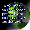 "to the world, you are one person. to one person, you are the world."