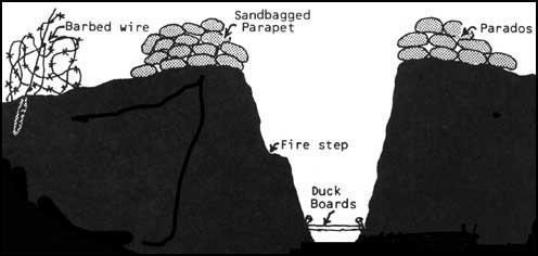 This shows the parapet, the position of the sandbags on the parapet, the parados, the fire step, the barbed wire, the duckboards, etc.