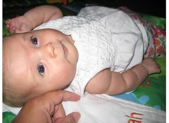 OMG! Her EYELASHES are eleventy billion miles long! Between those lashes, her sweet little blue eyes, and her rosy cheeks, she's gonna be a maneater (cue Hall & Oates). :DThank you, Sally, for doing this!