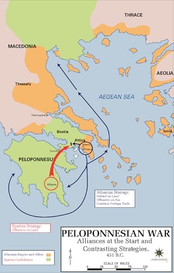 The Athenian strategy was to defend on land, launch an on-sea offensive, and continue foreign trade. The Spartan strategy was to launch an on-land offensive.