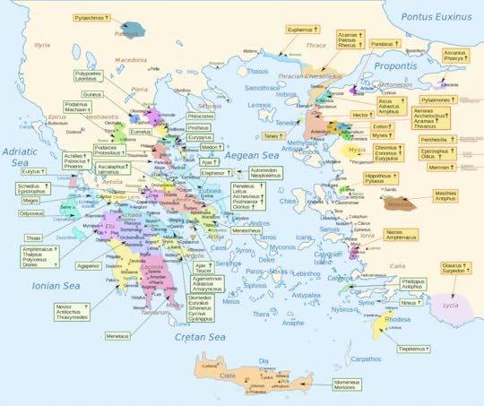 This map shows some of the many city-states of ancient Greece and includes the places that various characters from The Iliad and the Odyssey are supposed to have come from. Image credit: Wikipedia, Creative Commons 3.0 license, Pinpin
