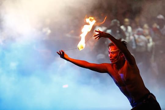 "A man performs with fire during a Hungry Ghost Festival parade along the streets of Keelung, Taiwan, on Monday. It is believed by some worshipers that the gates of hell are opened during the month and dead ancestors return to visit their relatives. The Hungry Ghost Festival started this year on Aug. 10 and ends on Sept. 7 with traditional Chinese operas, puppet shows, and concerts by believers to appease the roaming spirits. "