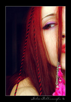 Apearance: She has bright red hair that goes up to mid-back. It is straight and is kinda choppy at the end. she has a side bang that covers her left eye. Her eyes are purple and get gradually darker towards the pupil. She is the average height for a 17 yr old, but she is kinda thin. She has slightly tanned skin. Usually wears aviator goggles like pilots wear. She has a belly-button piercing and her cartilage is pierced with a diamond. She is also very beautiful, and most guys fall for her. (not that she likes all of them!)