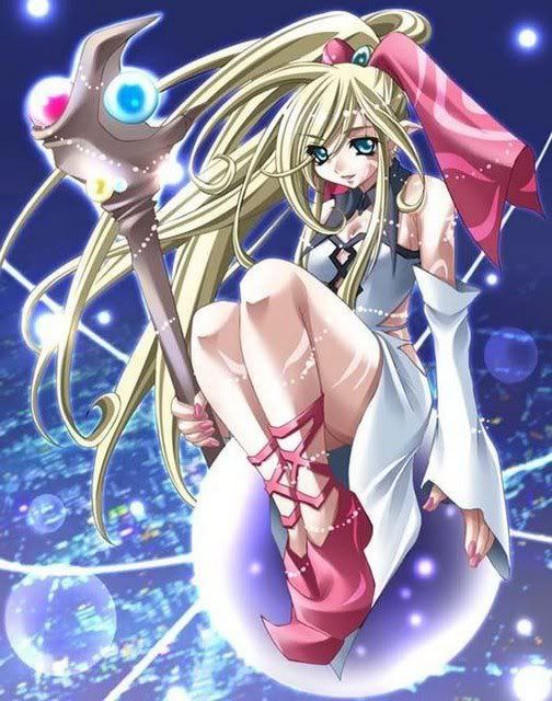 Weapons: Wand ^^ that shoot rainbows balls of power. It's very powerful, and she can also cast spells with it.